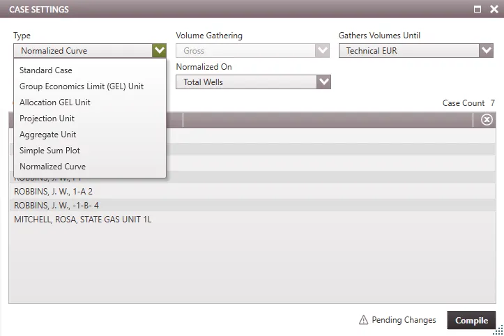 Note: Changing the Case Type does not create a new case, it will only change the case type for the active case. If you are trying to create a new case like a normalized curve, add a new case first.