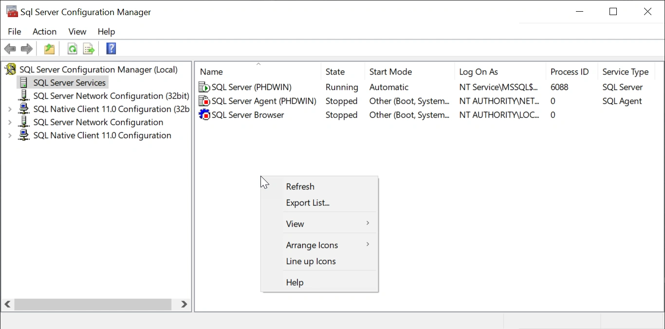 If you are the PHDwin user and have installed a local instance of Microsoft SQL Server where you are the system administrator, then your setup is complete and you don’t have to read any further in this section.