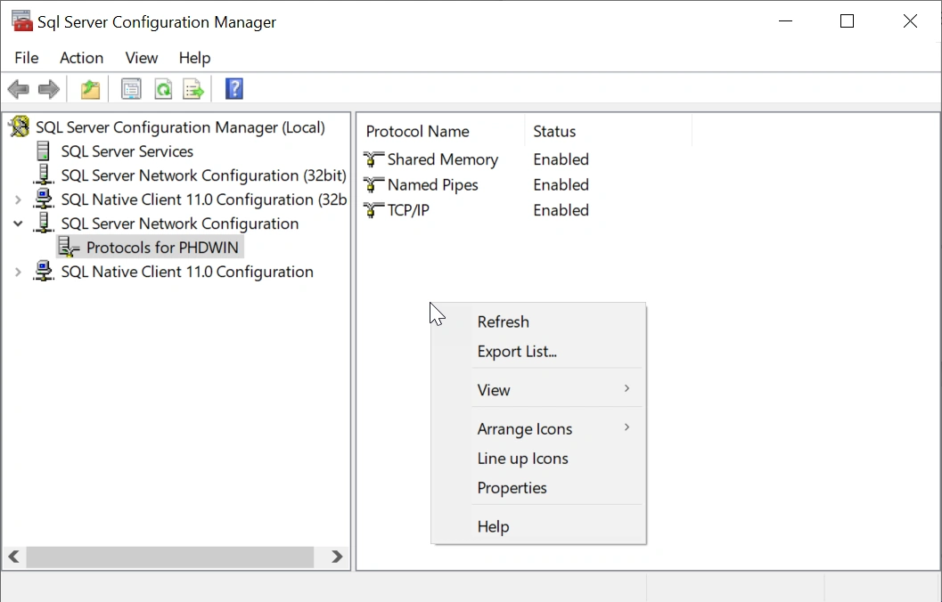 If you are part of an IT team installing PHDwin and SQL Server for the PHDwin user, you will need to create a SQL login for the PHDwin user. If the SQL Server instance was installed on a shared network location for multiple users to access, you will also need to enable TCP/IP & Named Pipes connections. All of the PHDwin users must be using the same build number of PHDwin to access a shared instance.