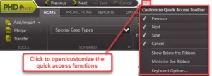 To Add Buttons to the Quick Access Toolbar: Right-click on any button on the ribbon and select Add to Quick Access Toolbar. To remove a button, right-click on the button and click Remove from Quick Access Toolbar.