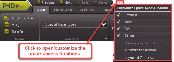 To Add Buttons to the Quick Access Toolbar: Right-click on any button on the ribbon and select Add to Quick Access Toolbar. To remove a button, right-click on the button and click Remove from Quick Access Toolbar.