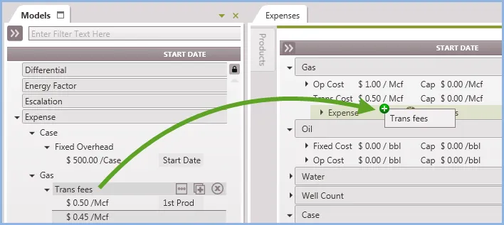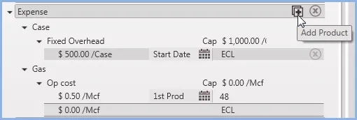 next to Expense and select the product to build the model for.To model a fixed cost, select Case. To model a well cost, select Total Wells. For other products, select the product and apply it to any stream (such as a trans cost, op cost or other cost).