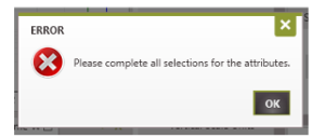 Important Note: Clicking Apply without making a selection for all the fields will result in an error saying “Please complete all selections for the attributes”.