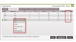 Test Products – Test Products are values measured or calculated by performing well tests (build-up, draw-down, etc.) on the case and can be plotted on the graph. Some examples of test products are: