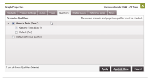 - Put a check mark next to the qualifiers to plot the data. A maximum of six qualifiers can be displayed at the same time on the graph. Note: the top level qualifier for the current scenario will be in bold and has to be displayed/selected.