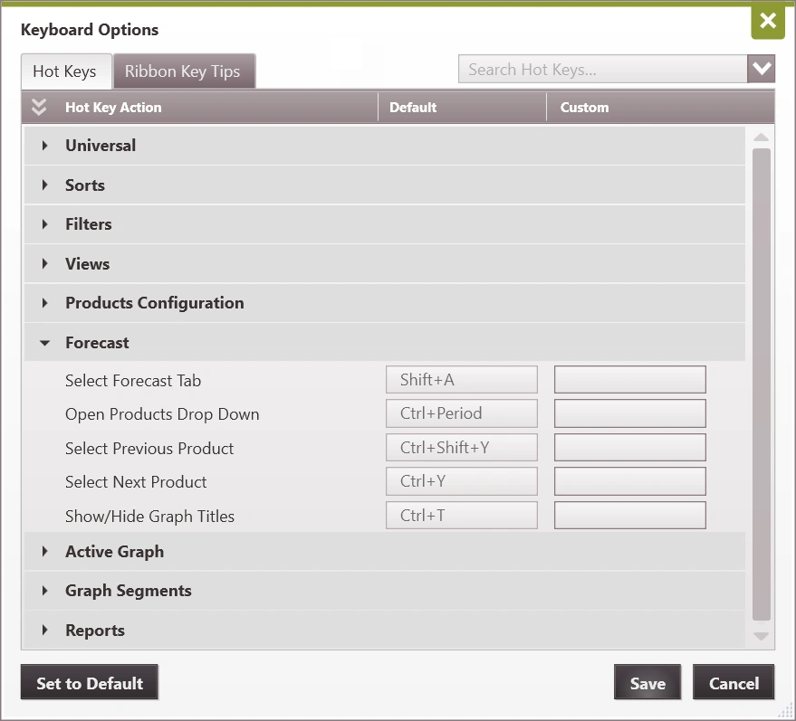 7.Click Save. If the Hot Key is already in use elsewhere, it will prompt for a different Hot Key to be selected. Make the desired change and click Save.