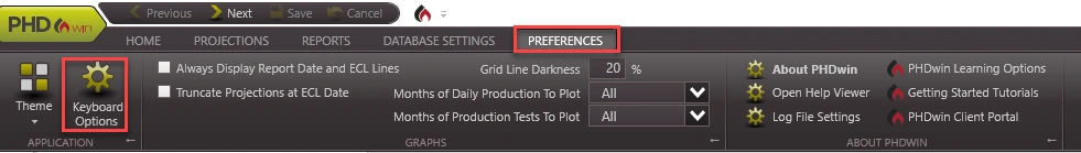 Within PHDwin, there are several Hot Keys available that may be used to navigate the program more quickly and efficiently. These hot keys are the default within the program. The default hot key is not available for every operation listed. For those operations without a default hot key, you can specify a custom hot key to use. You can also specify an alternative custom hot key for the defaults. Custom hot keys takes precedence over defaults. Hence, for operations with both default and custom hot keys, the default is ignored.