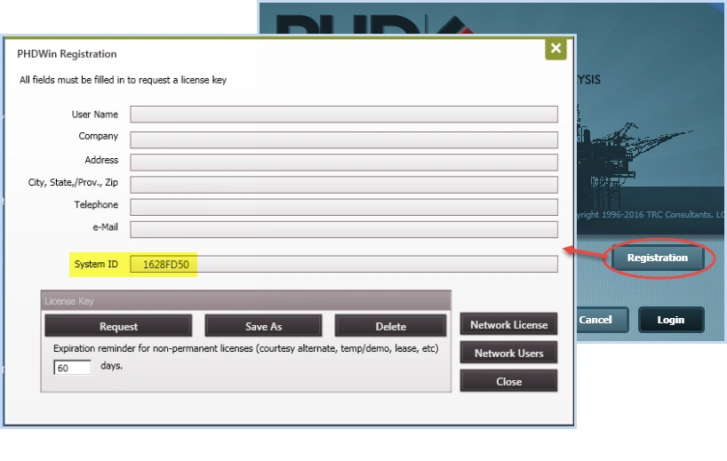 2.Open PHDwin. On the login window, click on Registration.