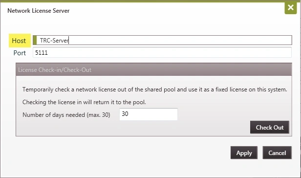 3.Click on the Network License button and type the name of the server next to Host.
