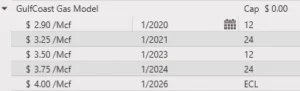 Paste into PHDwin by selecting the row where the values should begin (in this case on the $0.00/Mcf line), right-click and select Paste (or hit Ctrl+V). If there are segments above the one you are pasting into, the dates may change to resolve with the settings on the initial segment. The methods described above will result in the final model shown below.