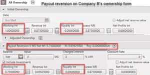 3.Enter the new ownership values (WI, RI, Royalty interest, & LNRI) for the case after the payout is reached.