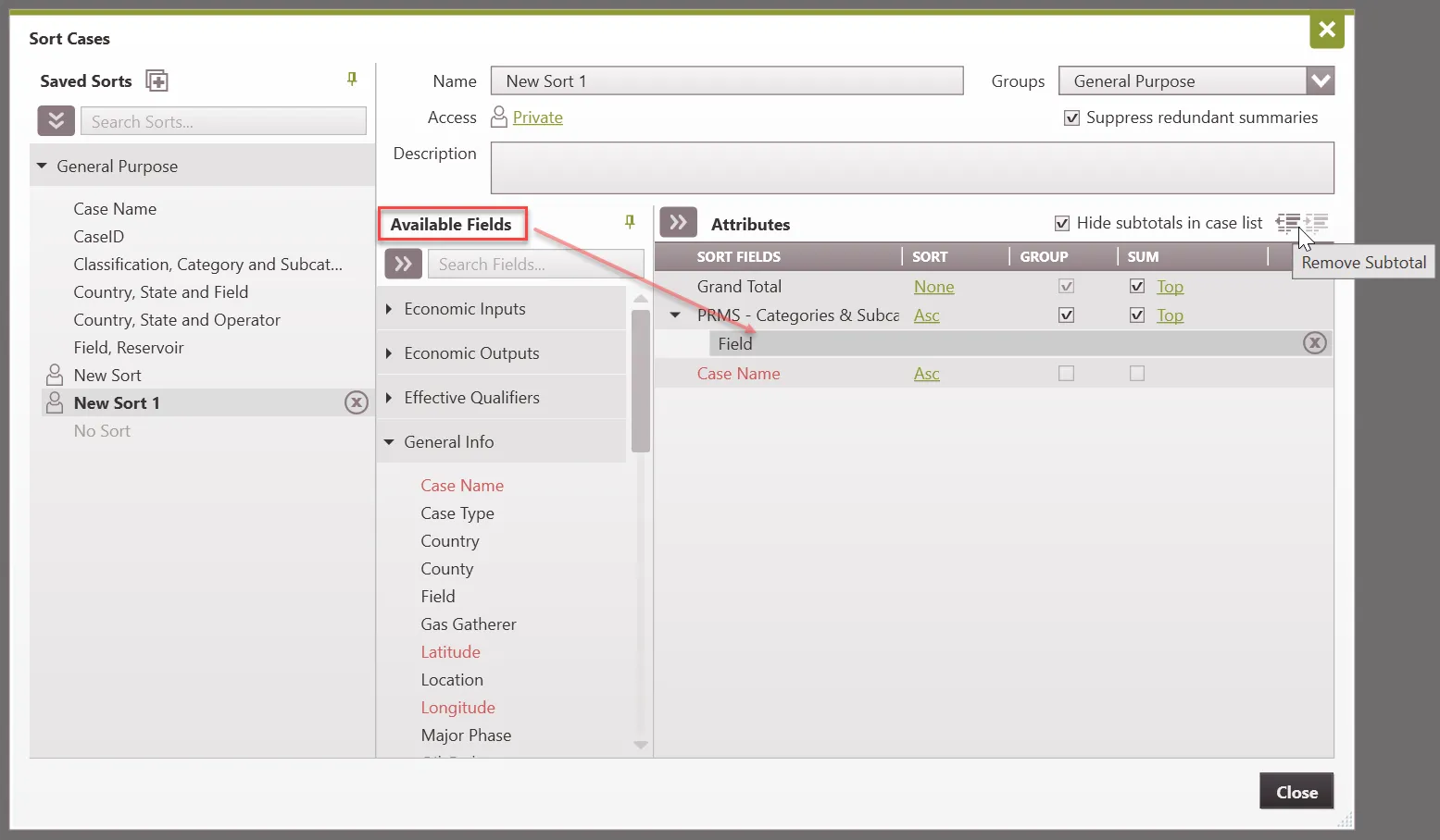 7.Add sub-totals, this allows users to sort cases within a common field based on a chosen sorting field.